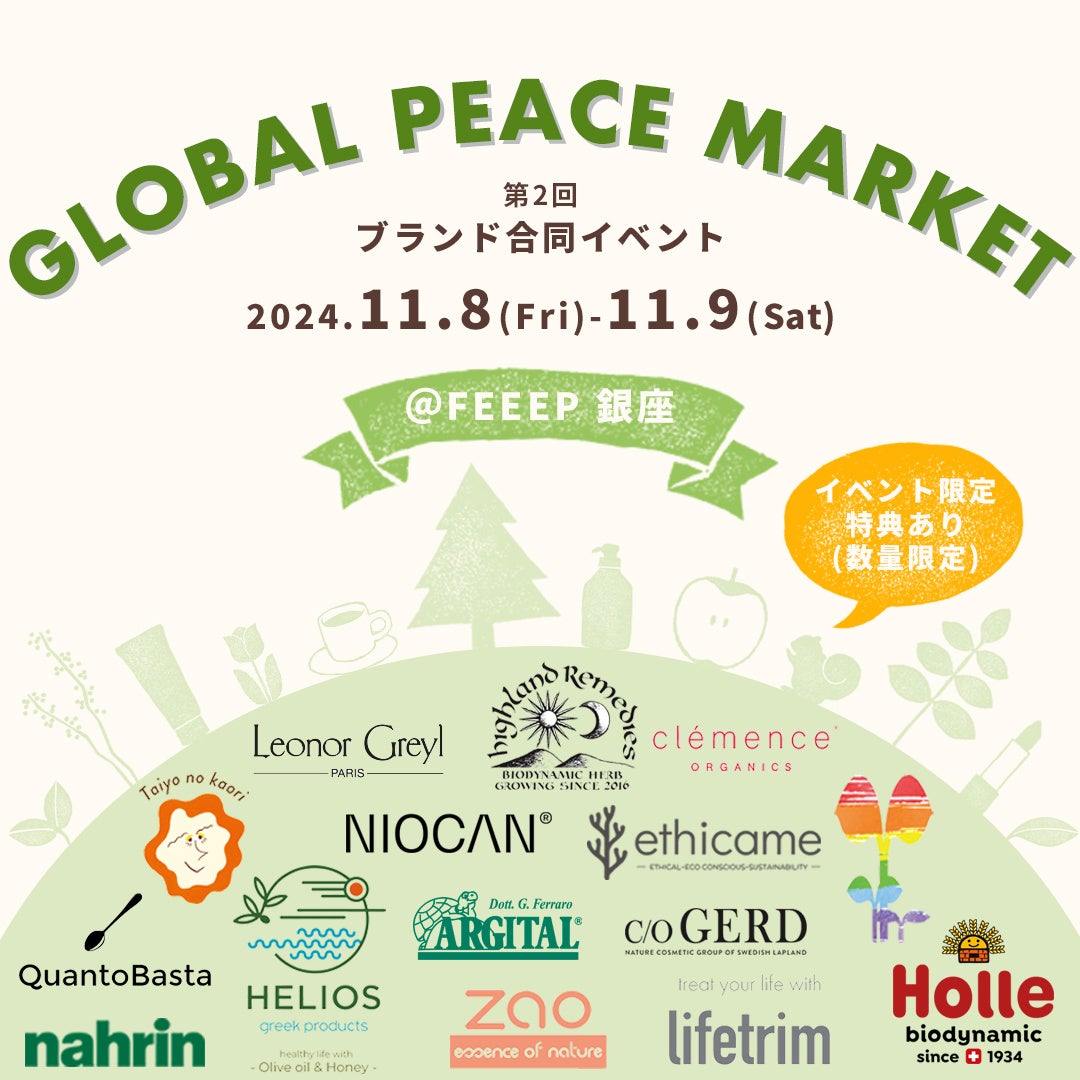 11月8日(金)〜9日(土)ナチュラルライフスタイルブランドが東京・銀座に集結! 合同イベント「GLOBAL PEACE MARKET」に参加