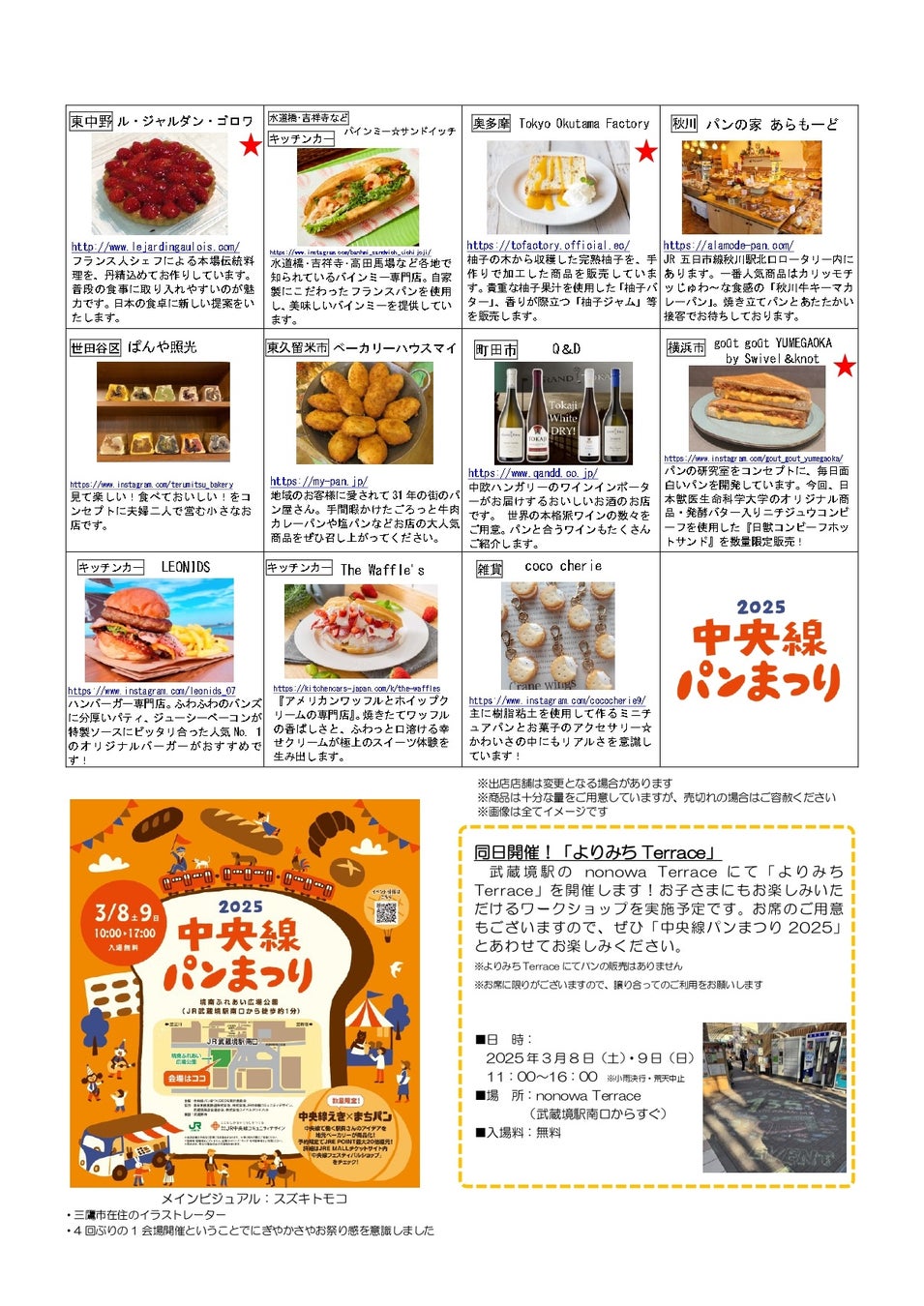 〇沿線のベーカリーが集まる「中央線パンまつり2025」を3月8日(土)・9日(日)に開催します。