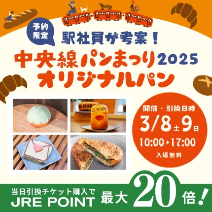今回は、「中央線えき×まちパン」をオンライン予約限定(※)で販売します。ご購入いただいた方には予約特典として、JRE POINTを最大20倍還元!数量限定のため、お早めにお買い求めください。