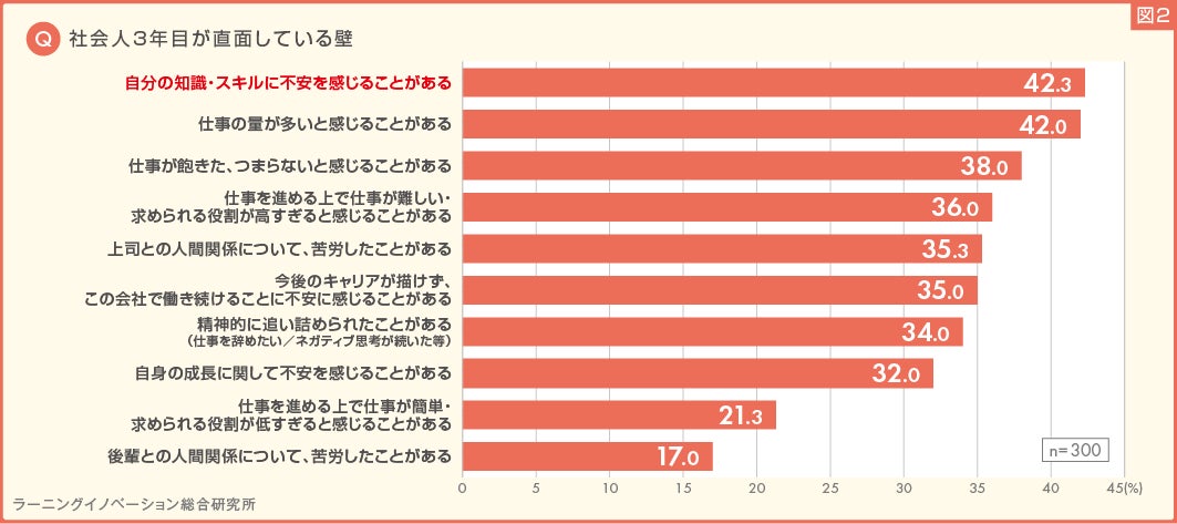 本調査結果は、社会人2年目と3・4年目の社員が「知識・スキルへの不安」を乗り越えるためには、異なるアプローチが必要であることを示しています。