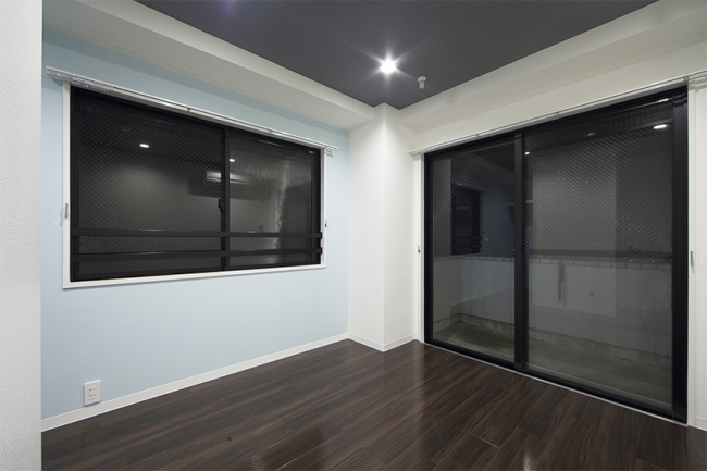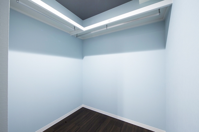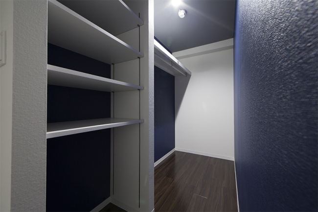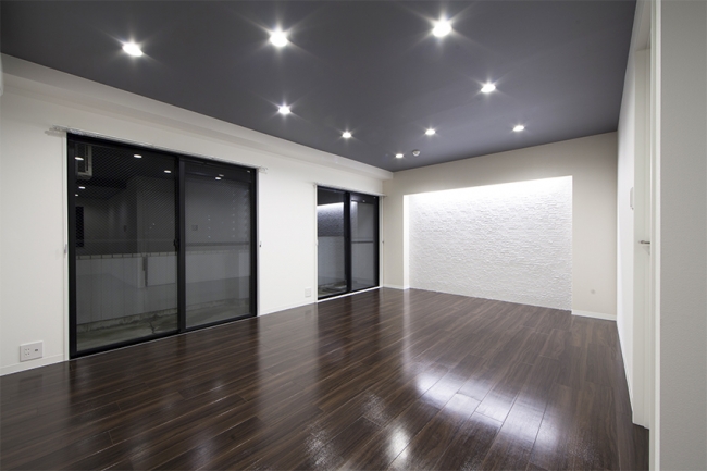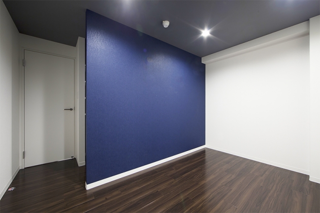 「Renotta」では、一部屋一部屋に独自のコンセプトを設定し、住む人の個性に合うように、「一戸一絵のリノベーション」を行っています。今回、新たに「Renotta」に誕生した「SHADING LIFE」では、壁の一面に光の陰影を楽しむ演出を設けています。凹凸のある壁を間接照明で照らすことで、やわらかな陰影を生み出しています。この壁は職人が手作業で仕上げており、人のあたたかみも感じられます。色使いもシンプルに仕上げているため、心やすらぐ、大人の空間になっています。