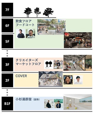 テナントとして地下1階に小杉湯による銭湯「小杉湯原宿(仮称)」が入居するほか、クリエイターがそれぞれの個性を生かしたフロア概要を公開いたします。また、入居テナントにより構成・運営されるクリエイティブコミュニティ「ハラカド町内会」を設立することで、新しい文化を創造・発信する商業施設をめざしてまいります。
