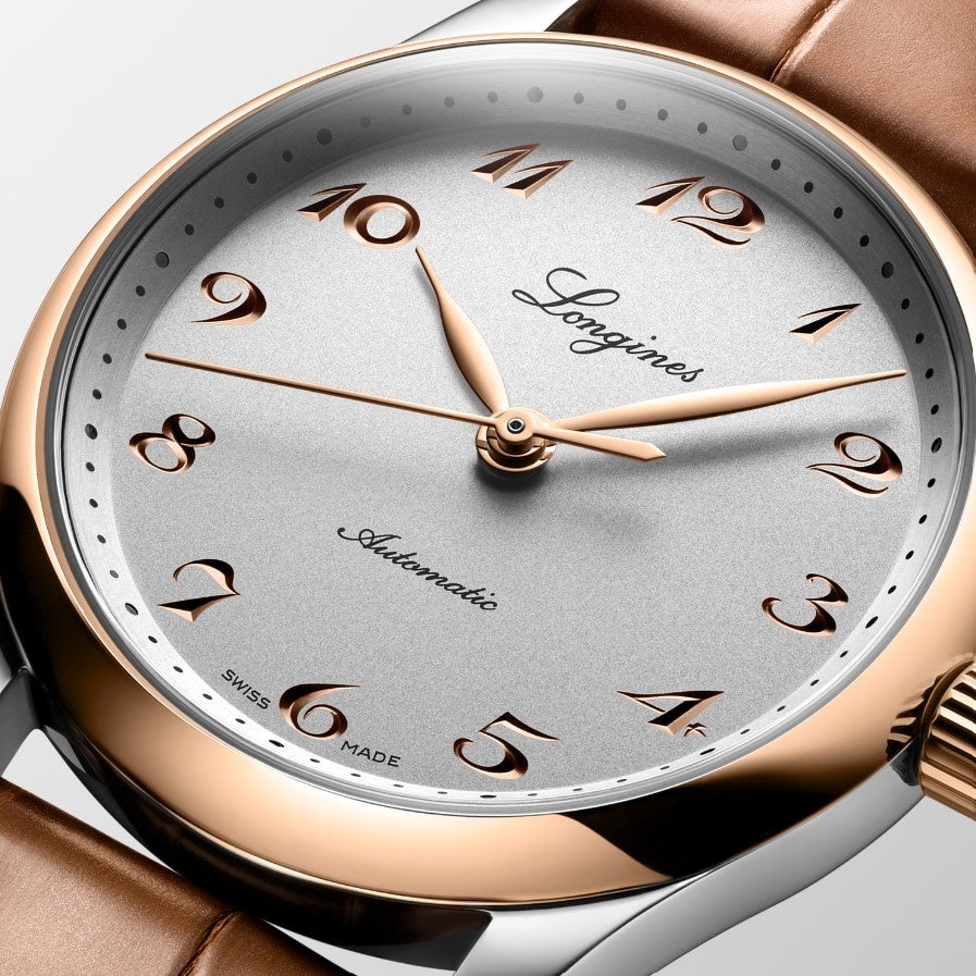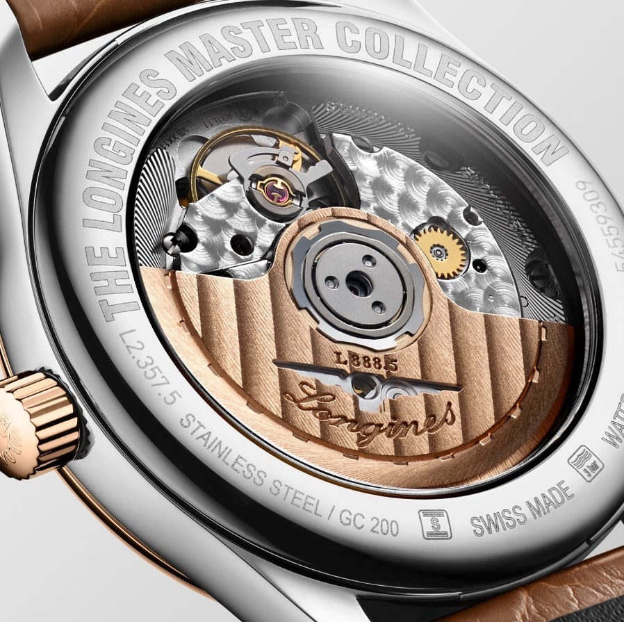 時計の心臓部には、ロンジン独自のキャリバーL888.5を搭載。シリコン製ヒゲゼンマイと革新的な部品を採用し、ISO764基準規格を大きく上回る耐磁性を実現。そして約72時間のパワーリザーブを備え、3気圧防水です。風防には、無反射多層コーティングを施したサファイアガラスを採用。シースルーケースバックから見えるローターは、ロジウムカラー、またはイエローゴールドカラー、ローズゴールドカラーで、ケースの色と美しく調和しています。
