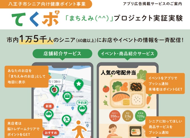 八王子市内健康ポイントアプリを活用した広告配信サービス実証実験 市内シニア1.5万人に情報配信「てくポ まちえみプロジェクト」協力企業募集