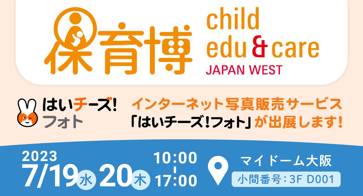 「保育博ウエスト2023」で当社は、インターネット写真販売「はいチーズ!フォト」をはじめとする総合保育テックサービス「はいチーズ!」シリーズをご紹介します。