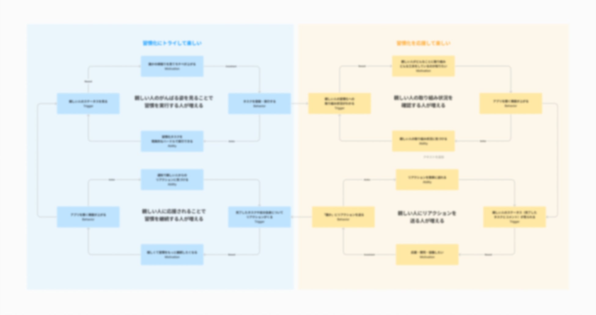 サービスの構想段階から参画し、JTの担当者とともに「友達や仲間と一緒に目標達成・習慣化にチャレンジ」のアイデアをより明確かつ実現可能なコンセプトへと磨き上げました。具体的には、JTが保有する調査データの分析を行い「友人同士で楽しく取り組む習慣化」というサービスのコアバリューの明確化、さらには競合との差別化を意識した戦略設計、体験のサイクルをベースとした継続の仕組みづくりなど、サービスの拡張性を見据えた提案を行いました。