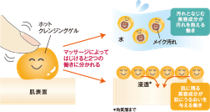 一般的に温めると肌はやわらぎ汚れや古い角質が落ちやすくなります。柔軟で滑らかな肌は、角質層の水分量が多く、キメが整っており、透明感があるツヤやかでハリのある肌であることがわかっています。 温めてクレンジングをすることで、透明感のある肌へ導いてくれます。