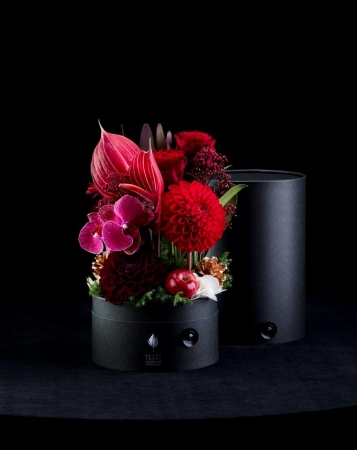 一つは気持ちを伝え、二人にとってクリスマスを掛け替えのない日にするアレンジメントです。商品は円筒形のボックスに、深紅のバラやダリアをあしらったアレンジは角度によって異なる表情を見せ、クリスマスの食卓に映えるギフトです。