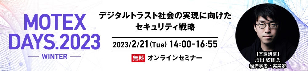 《イベント情報》成田 悠輔 氏 登壇!「MOTEX DAYS.2023 -WINTER- デジタルトラスト社会の実現に向けたセキュリティ戦略」を開催