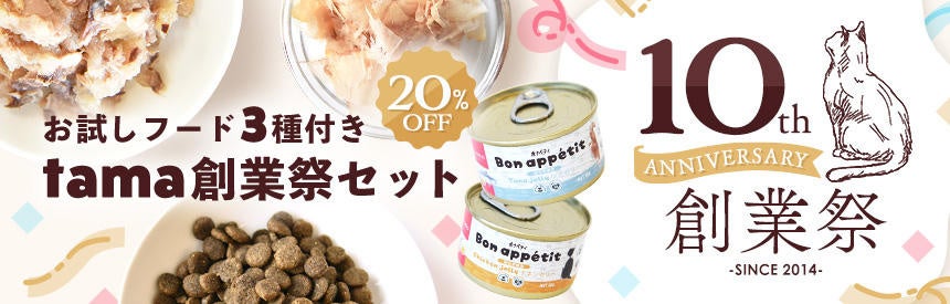 プレミアムキャットフード専門店・通販「たまのおねだり(tama)」は、4月22日に迎える「創業10周年」を記念し、4月23日(火)まで大型キャンペーン「10周年創業祭」を開催しています。日頃の感謝を込め、総勢100名様に当たる豪華プレゼントをご用意していますのでこの機会にぜひチェックしてみてください。
