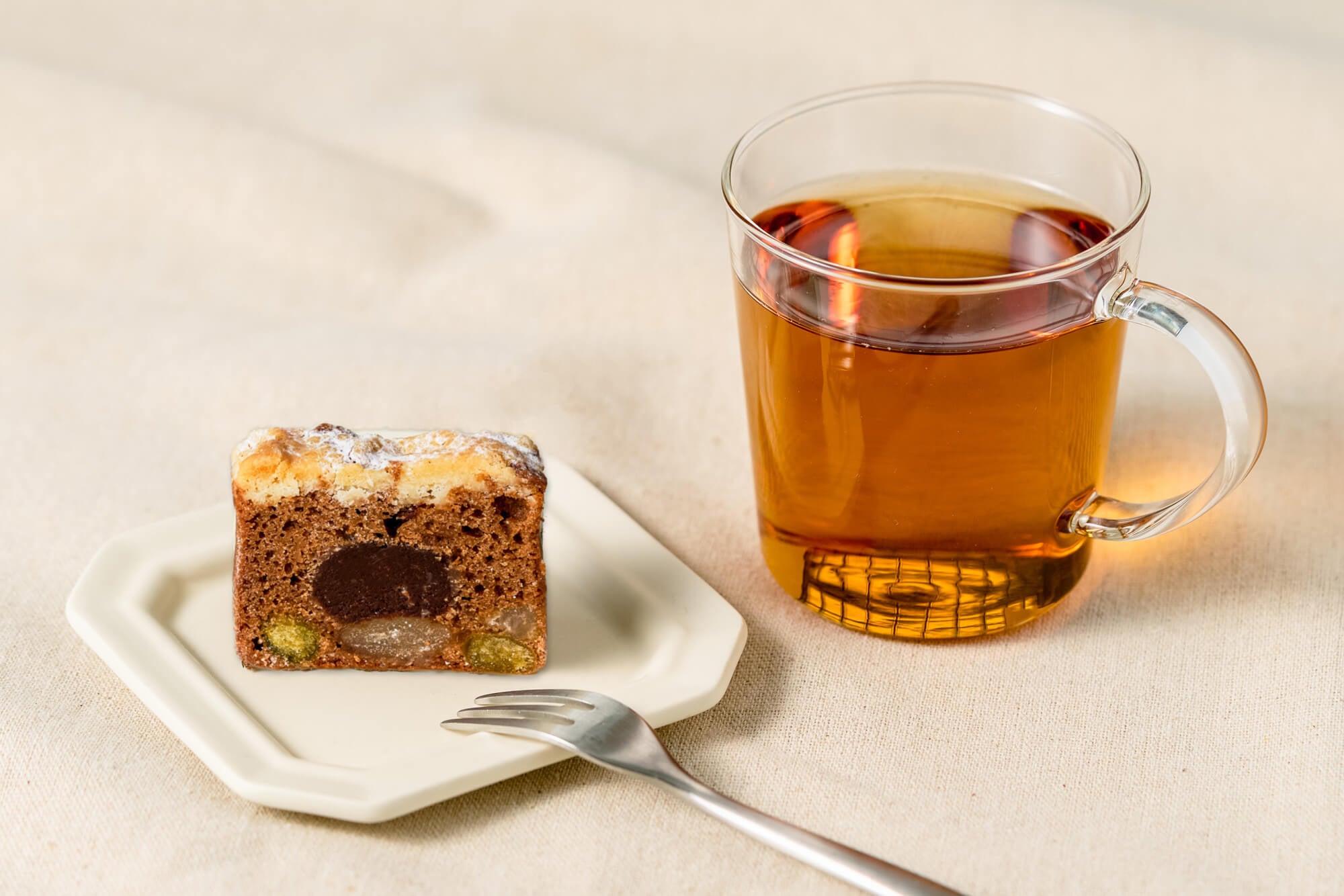 中央には、フィリピン産カカオ豆を使ったコクのあるチョコレートガナッシュを用いて、全体の味わいを引き締めています。上部のバター香るさくっとしたクランブルが、食感と味わいのアクセントを生み出し、甘納豆とチョコレートを引き立てます。