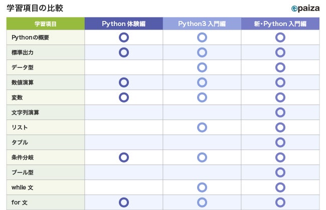 ITエンジニア向け国内最大の転職・就職・学習プラットフォーム「paiza(パイザ)」を運営するpaiza株式会社(東京都港区、代表取締役社長/CEO 片山良平)は、このたび、動画プログラミング学習サービス「paizaラーニング」で提供している「Python3入門編」の学習項目を10レッスンから25レッスンに拡大し、より幅広く学べる「新・Python入門編」として大幅リニューアルしましたので、お知らせします。また「Python体験編」のほか、過去に有料公開していた「Python3入門編」を無料で提供します。