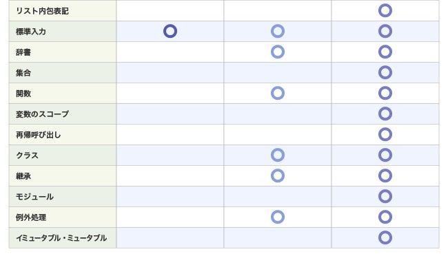 ※「Python体験編」、「Python3入門編」で扱っている各項目についても、「新・Python入門編」ではより詳細に学習することができます。