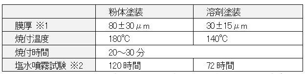 ※1粉体塗装:顔料や添加剤などをパウダー状にした塗料で、厚膜塗装がしやすい