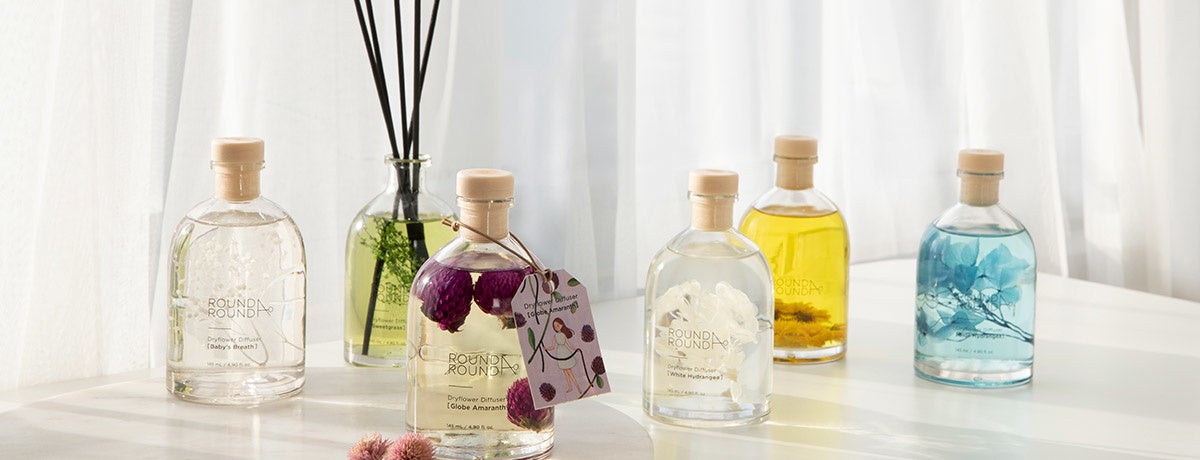 ‟わたし時間を満たすライフコスメティック“「ROUND A’ ROUND」は韓国の様々なコスメアワードで首位を獲得した「グリーンティピュアクレンジングフォーム」やドライフラワー生まれのディフューザー、ボディミストが人気。