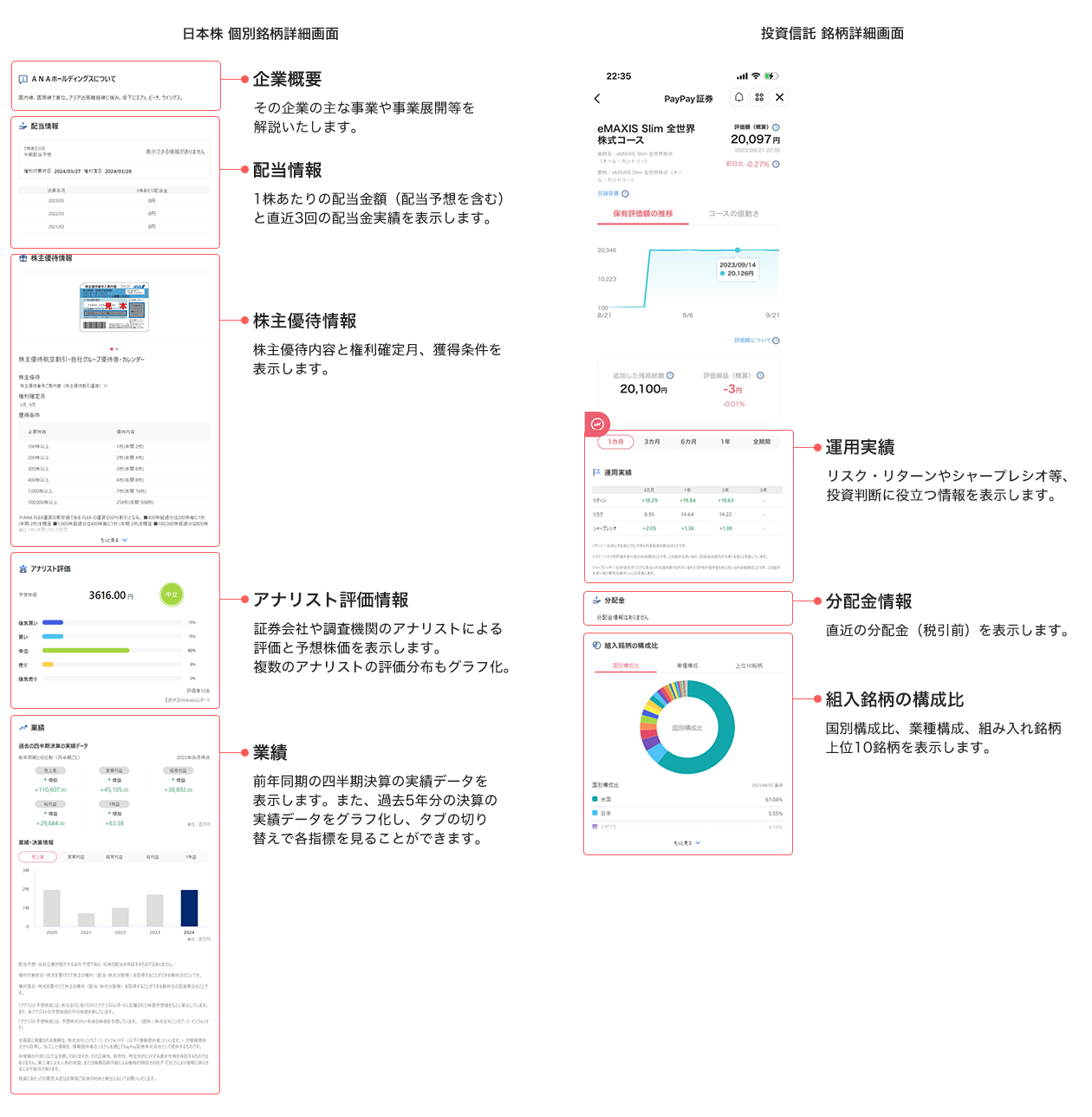 ・米国株に加え日本株や投資信託の投資情報がさらに充実し、銘柄選びをサポート