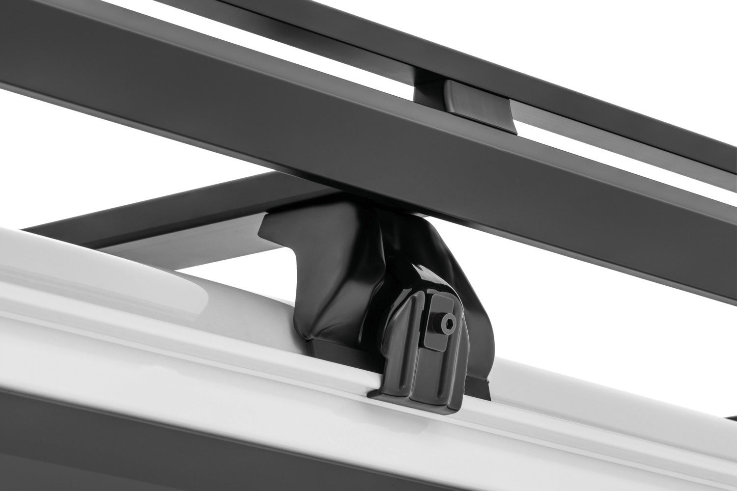 商用車として使われることが多いハイエースは全高が高く、ルーフラックを装着すると立体駐車場の高さ制限を超えてしまうことがありました。装着時の全高を2.1m以下に収めるには、車両のルーフに干渉させないようにフロアパネルの位置を可能な限り下げる必要があります。そこで、フロアパネルの剛性を高め、荷重時のたわみを少なくすることで解決。また、ハイエースを仕事で使う傍ら、プライベートで乗用車として使用するユーザーへ向け、アウトドアシーンにも似合うデザインとカラーにしました。