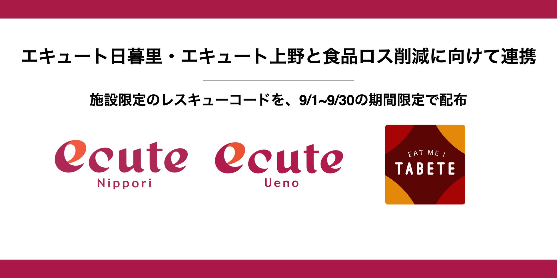 エキュート日暮里・エキュート上野とTABETEが施設内食品ロス削減に向けて連携。9月1日(木)〜9月30日(金)の期間中使用できる限定レスキューコードを配布。