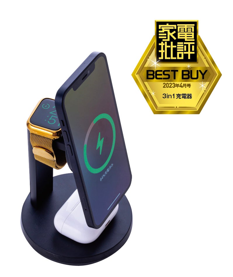 スマートで設置しやすく、なんといっても5000円を切る価格で、iPhoneに搭載されているMagSafe対応というコスパの高さが最大の魅力。MagSafe部分は見やすい角度に調節でき、土台にAirPodsの充電位置がひと目でわかるくぼみが設けられているなど、使い勝手への配慮も文句なし。机の上をスッキリさせたいのならこの製品がベストです!