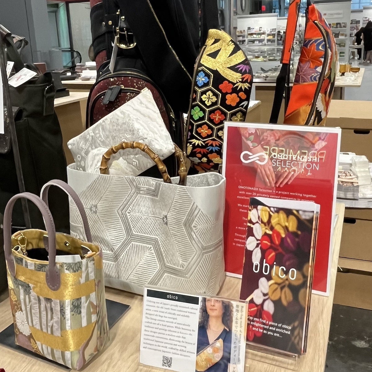 美しい和柄の着物帯と高品質な本革を組み合わせ、日本の伝統文化と現代的なデザインが融合したユニークなアクセサリー。SDGsへの貢献を目指し、アップサイクル商品としても注目。