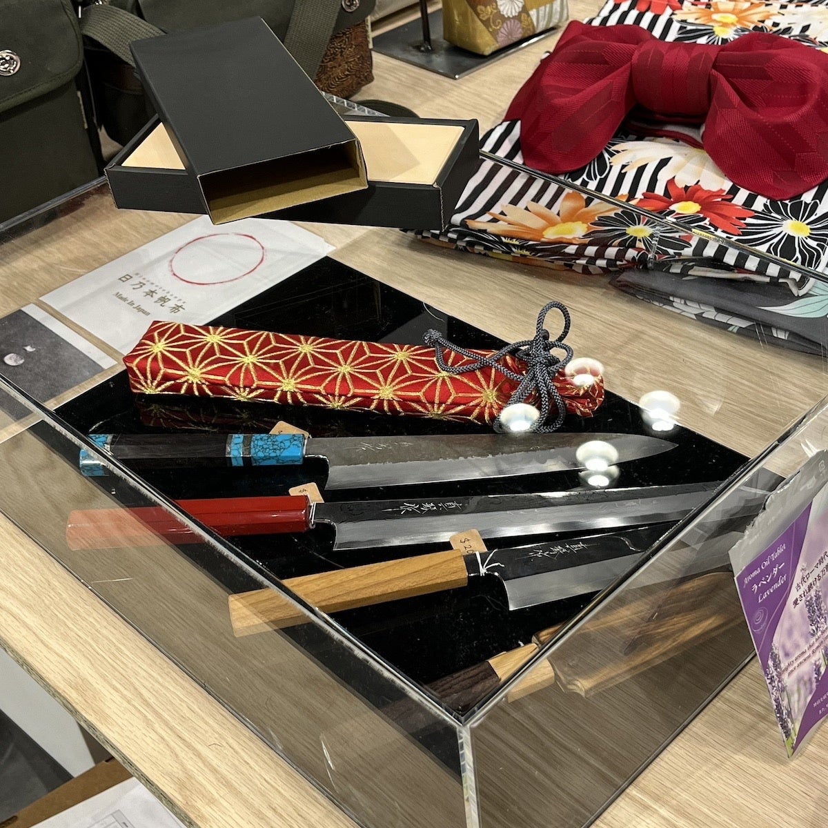 熟練された職人により、1つ1つ丁寧に全て手仕事で造られる和包丁。ラッピングには風呂敷を使用し、日本の着物をイメージ。