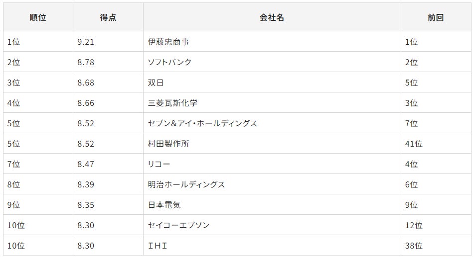 ~「伊藤忠商事」が5年連続で総合第1位を獲得!~