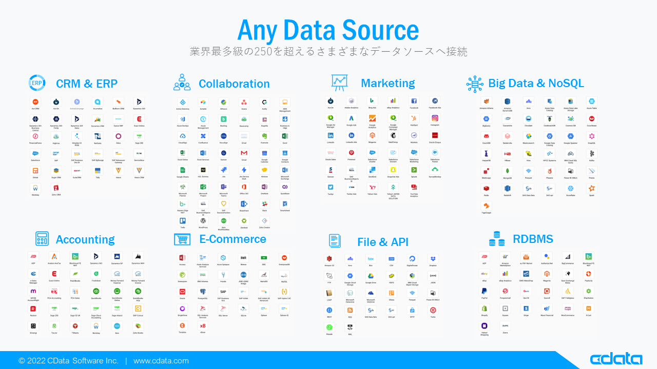 連携可能なCData JDBC Drivers 一覧:https://www.cdata.com/jp/jdbc