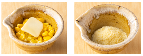 お好みで追加のコーンバターを入れるとチーズの風味とコクがプラスされ、より濃厚な味わいをお楽しみいただけます。