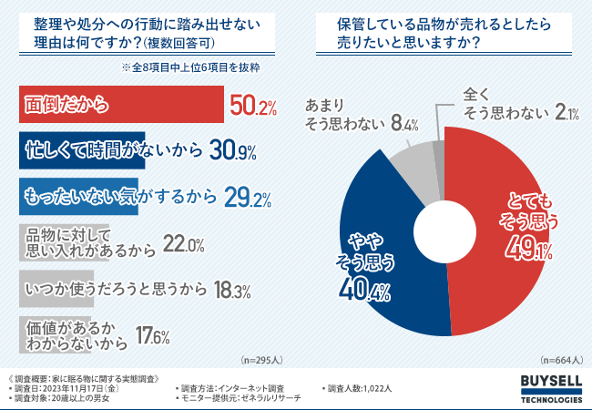 過去に整理や処分を行ったのは約半数。一方で「売れるなら売りたい」と思うのは約9割。