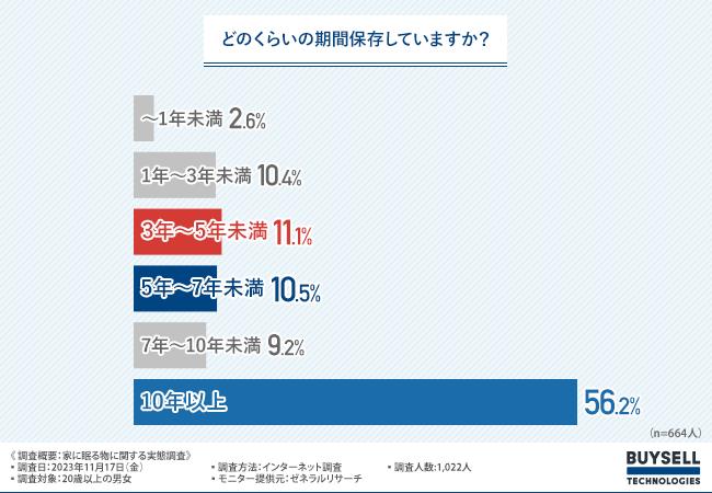 物を保存している期間は「10年以上(56.2%)」が最多