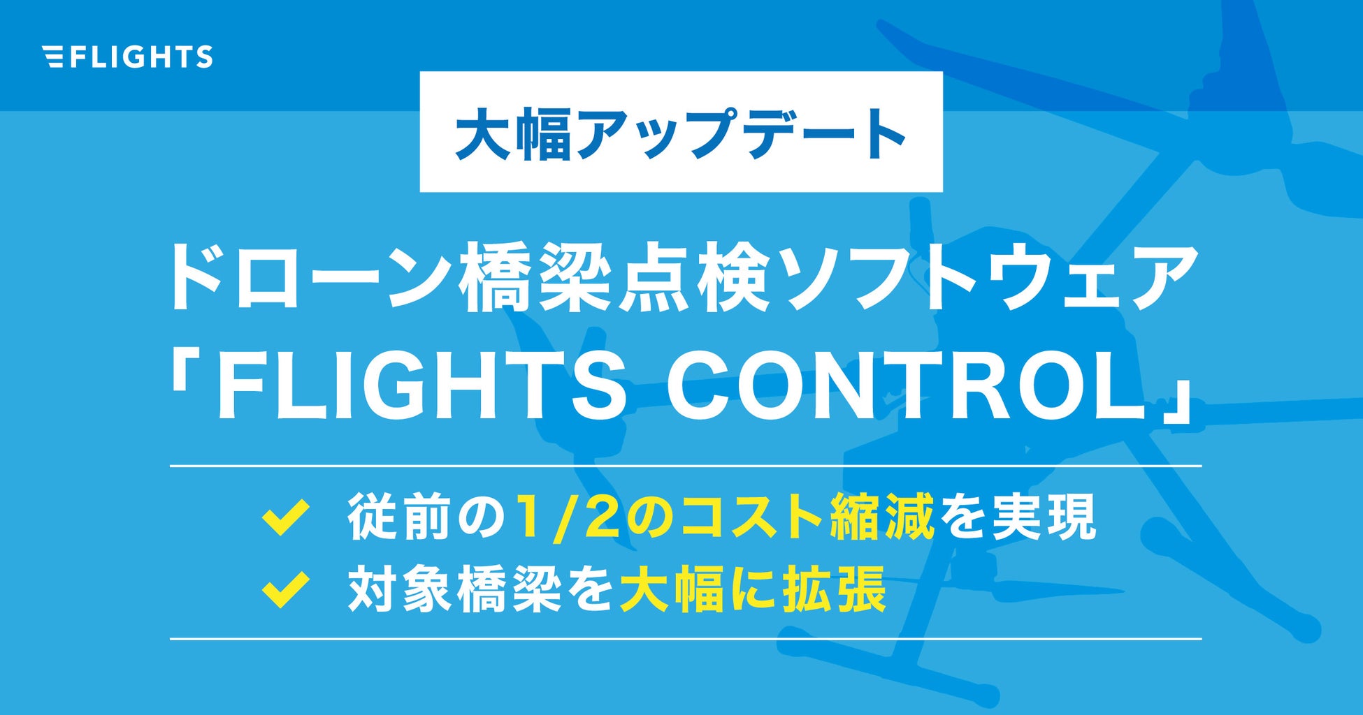 株式会社FLIGHTS(本社:東京都渋谷区、代表取締役:峠下周平 以下:FLIGHTS)は、ドローン橋梁点検ソフトウェア群「FLIGHTS CONTROL(フライトコントロール)」にて提供する各種機能をアップデートし、ドローンによる画像取得効率を2倍に、画像取得後の点検成果の作成プロセスのコストを1/2にすることを実現しました。
