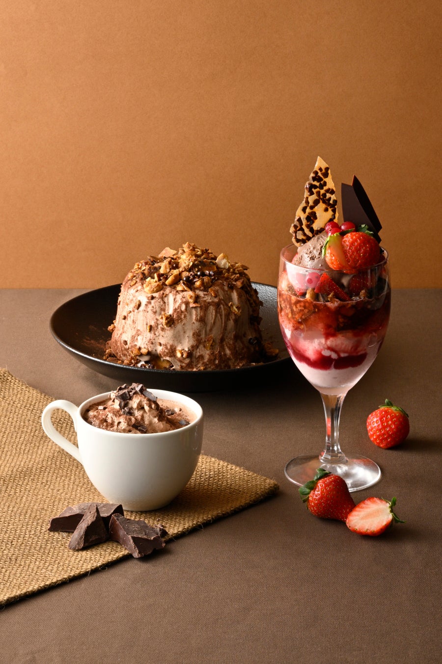 チョコレートをメインに、いちごがアクセントになった2種のスイーツと、寒い冬にピッタリなチョコレートを使ったホットドリンクが登場。