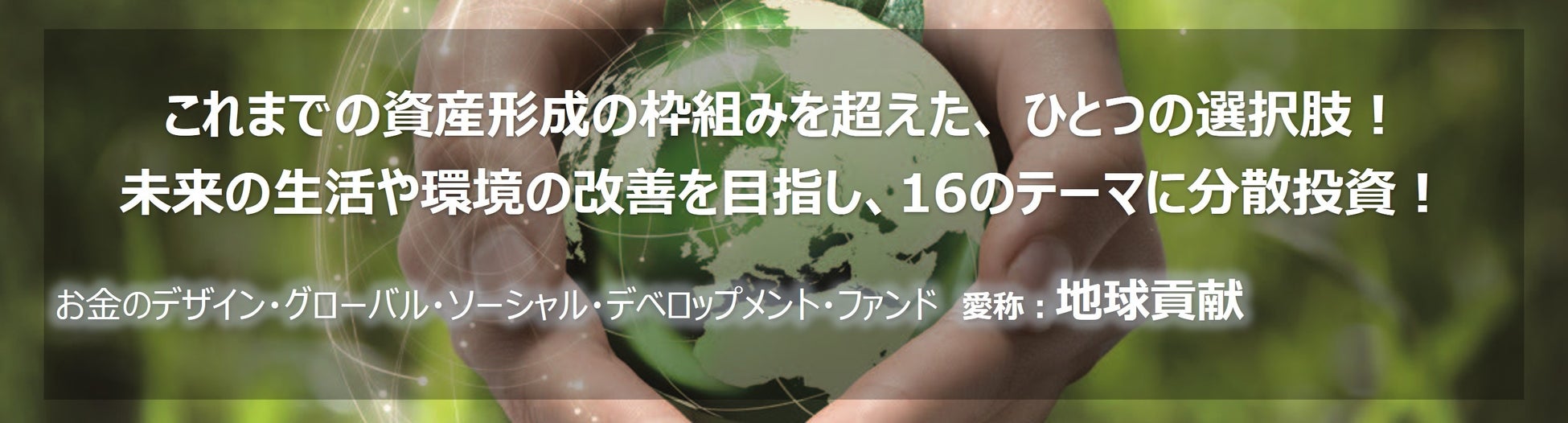 【積立投資におすすめ】SDGsをベースに16の環境・社会テーマに投資する『お金のデザイン・グローバル・ソーシャル・デベロップメント・ファンド』を本日取扱開始!