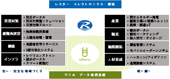 この度の資本業務提携により、レスターHDのエレクトロニクスを活用した多様な商材・サービスと、ウフルのICTを推進する自治体(※3)向けデータ連携サービスの融合を図り、両社の強みを活かし「安全・安心」や「地方創生」を軸とした幅広いパッケージソリューションを自治体向けに提供がしてまいります。