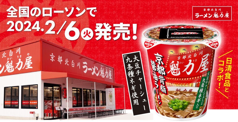 コラボカップ麺「魁力屋 京都背脂醤油ラーメン」が2024年2月6日(火)から発売します。