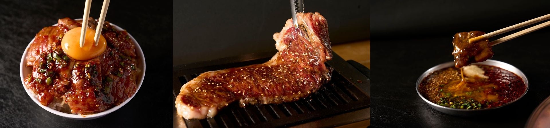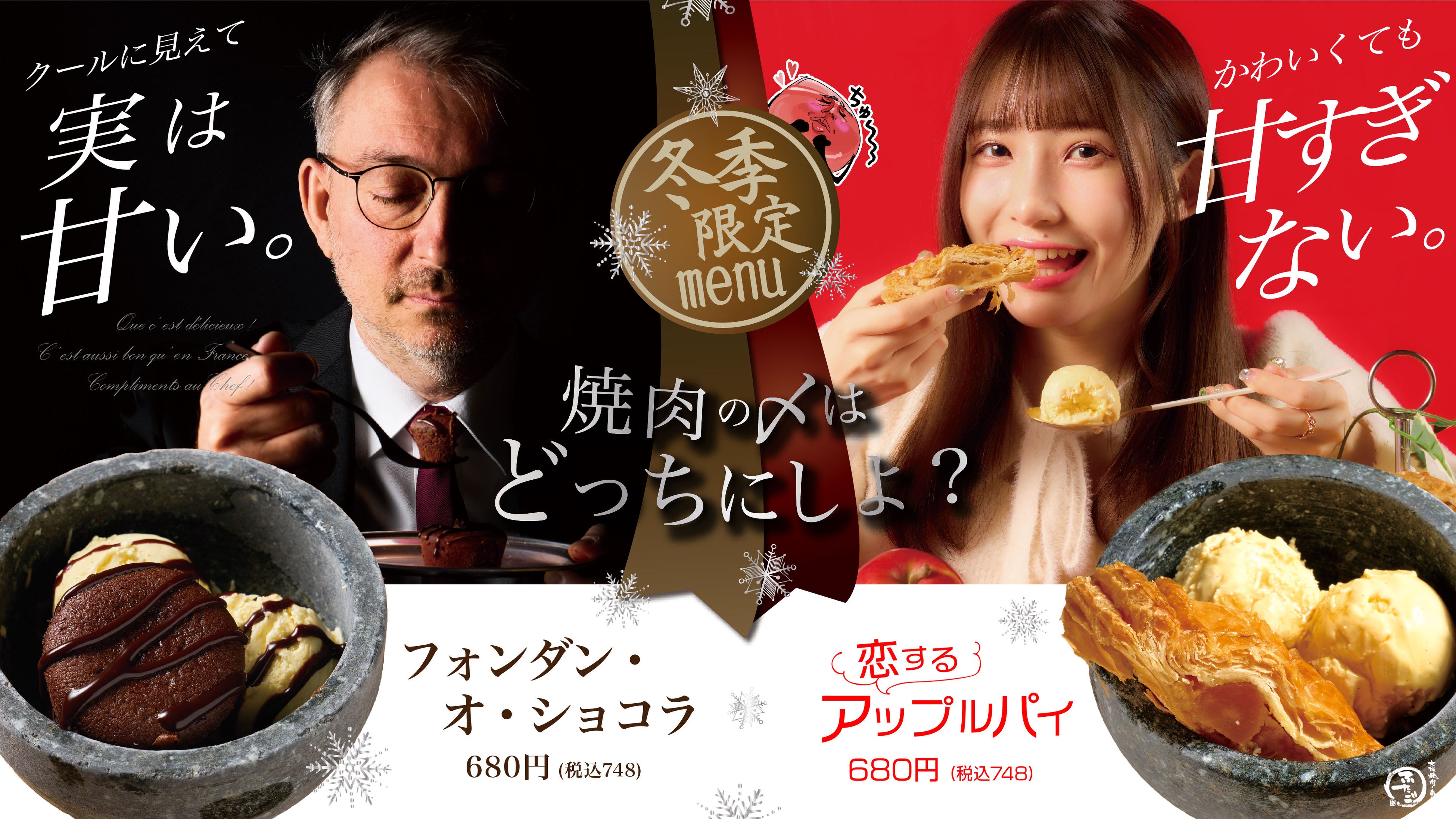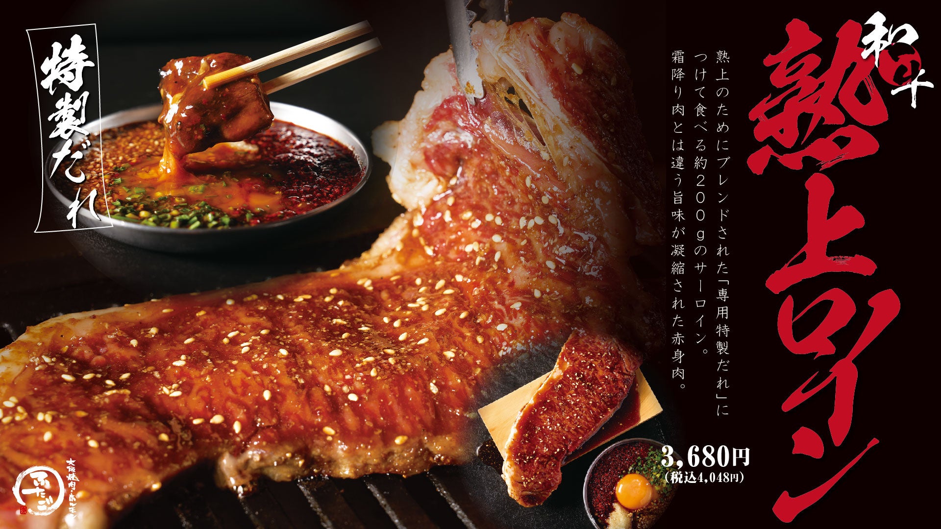 “名物!!黒毛和牛のはみ出るカルビ”が話題の「大阪焼肉・ホルモン ふたご」、今年の冬は特製ブレンドだれで食べる贅沢和牛サーロインと、旬の人気デザートが2品登場!