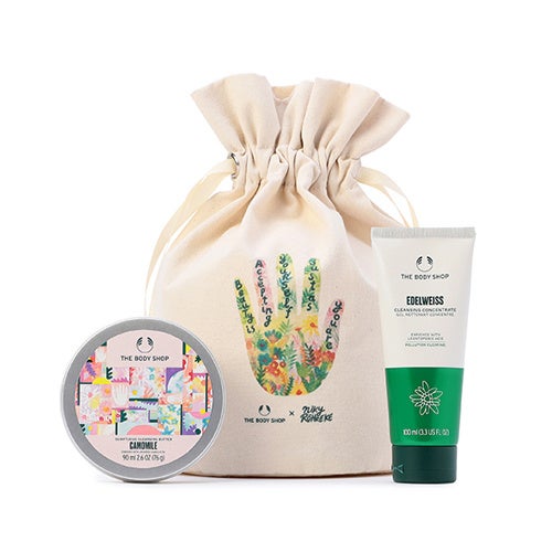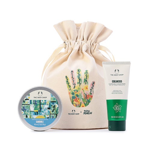 「より公正で美しい世界のために立ち向かう」というブランドパーパスのもと実現した今回のコラボレーション。ブランドの理念に共感するアーティストが特別に描き下ろした作品を店舗環境や製品パッケージに起用し、共にメッセージを発信していきます。2023 年3 月3 日(金)にリニューアルオープンするザボディショップ新宿店を皮切りに、ニキ ローレケ氏描き下ろしのデザインを纏った人気製品カモマイルシリーズやオリジナルポーチ付きキットの限定販売を開始します。さらに、新宿店の内装や什器にもニキ ローレケ氏のアートが施され、店舗を訪れるお客様にお買い物をしながらブランドパーパスを感じていただける空間に生まれ変わります。