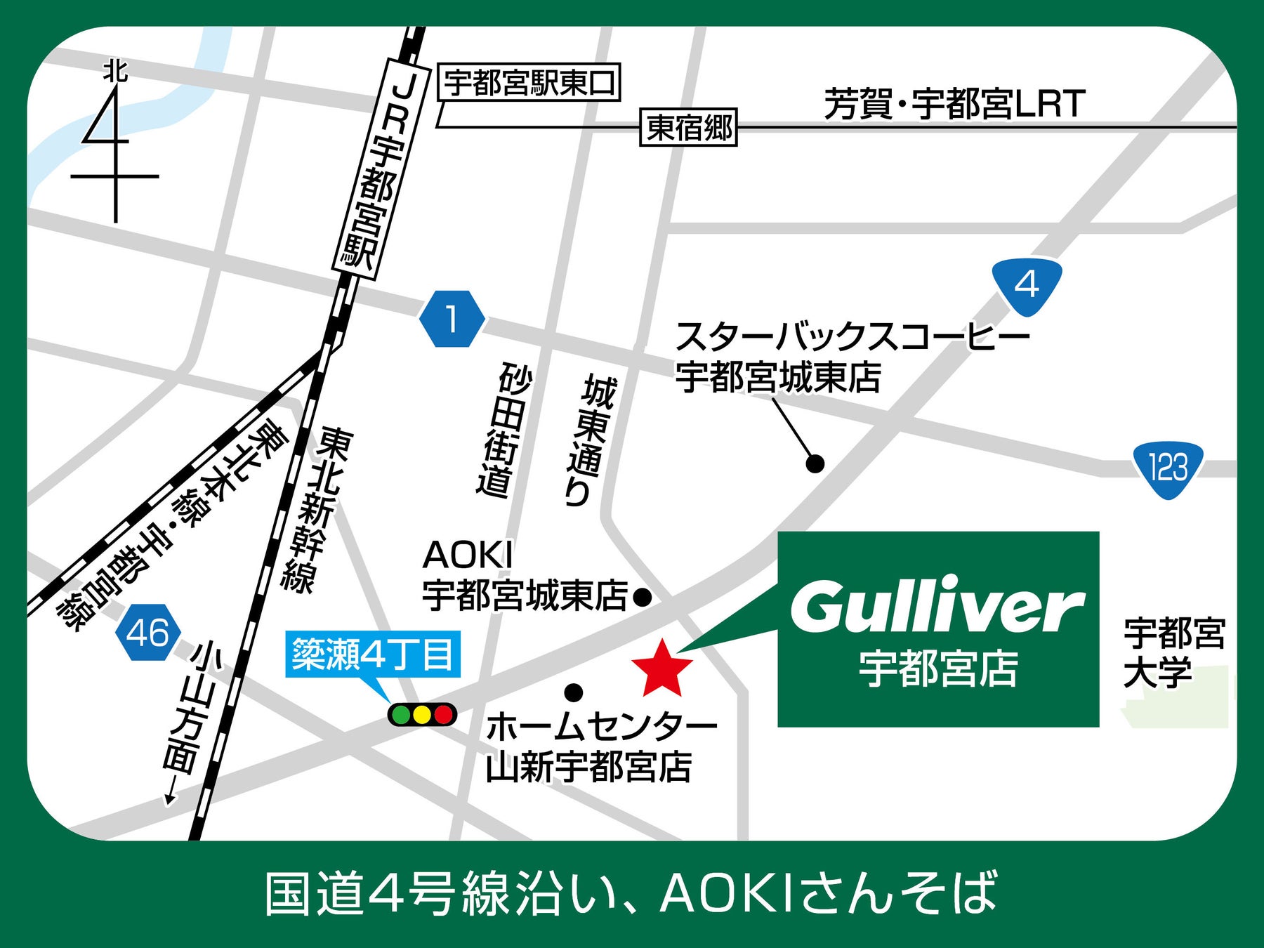 また、宇都宮駅から2キロ圏内に位置し、周辺には娯楽施設や有名ショップも立ち並んでいるため、おクルマ以外でお越しのお客様からご家族連れまで、お気軽に足をお運びいただける立地となっております。