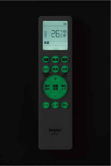 ⑨暗くても使いやすい「蓄光ボタン採用リモコン」付属※5