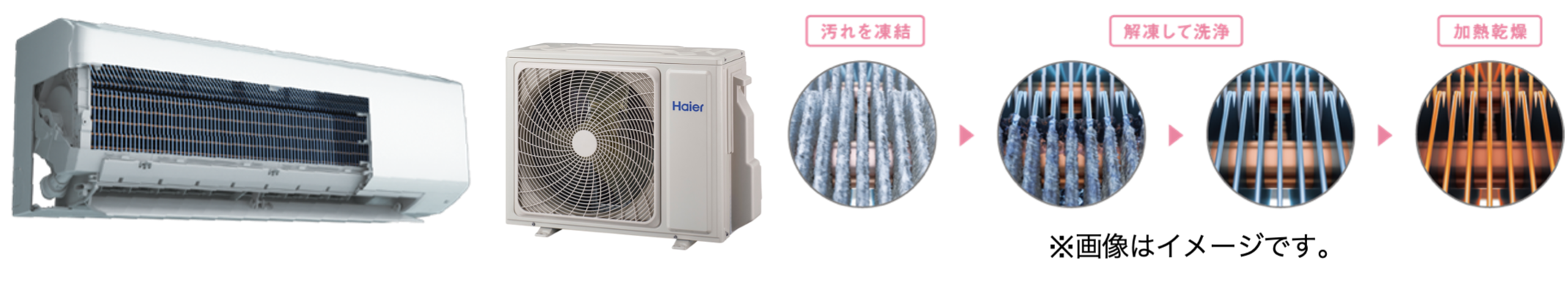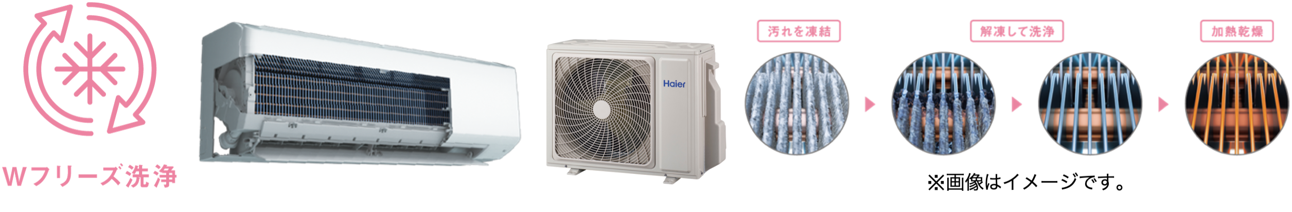 ①室内機・室外機を内部洗浄する「Wフリーズ洗浄」を搭載