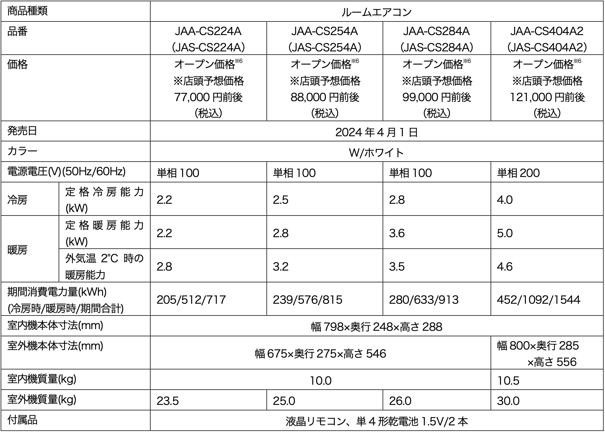 ルームエアコン「huu」(CSシリーズ)の概要は以下の通りです。