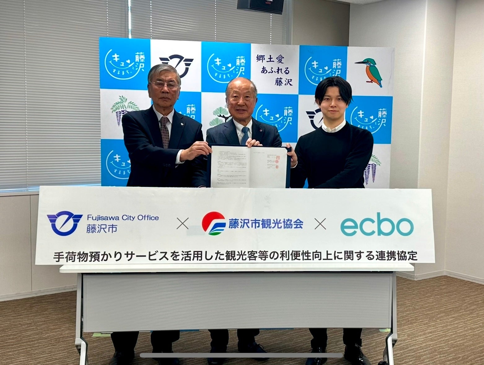 荷物預かりサービス「ecbo cloak(エクボクローク)」を運営する、ecbo株式会社(本社:東京都渋谷区、代表取締役社長:工藤慎一、以下 ecbo)は藤沢市および公益社団法人藤沢市観光協会(以下 協会)と、藤沢市内の手荷物預かりサービスを利用した観光客等の利便性向上に関し、連携・協力し、相互の発展に資するために、本日2024年11月25日に連携協定を締結しましたことをお知らせいたします。