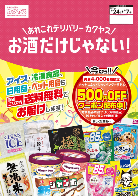 カクヤスでお酒以外の商品をデリバリーしていただくことにより、お客様の日常生活をさらに快適に便利にしたいという想いから、「お酒だけじゃない!キャンペーン」を実施します。