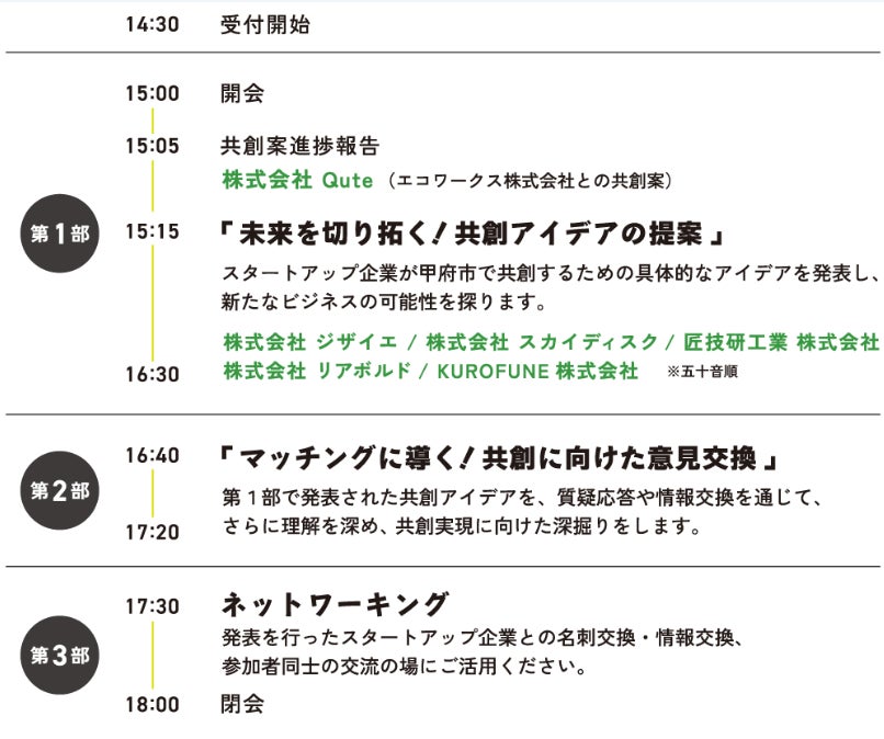 市内企業が長年培ってきた「伝統」と、スタートアップ企業の「革新」の共創により、それぞれの強みを活かし、甲府市の未来に繋がるイノベーションを目指します。