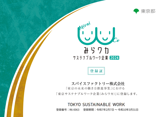 スパイスファクトリー、令和7年度「Tokyo Future Work Award」優秀賞受賞