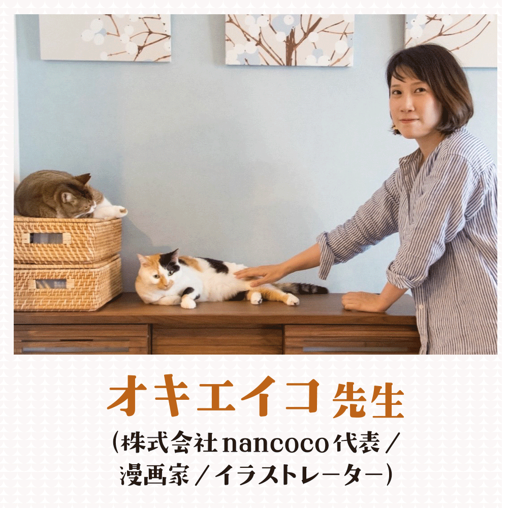 株式会社nancoco代表/イラストレーター「猫を残して死ねない問題」をライフワークとし、ねこヘルプ手帳などを考案・製作している。自身も2匹の保護猫と暮らす。獣医師とタッグを組んだ連載や書籍などを多く手掛ける。代表著書は保護猫エッセイ「ねこ活はじめました」