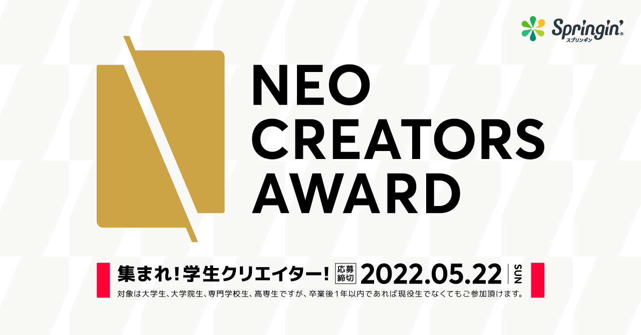 NEO CREATORS AWARD詳細ページ:https://www.springin.org/challenge/neo_creators_award_1/