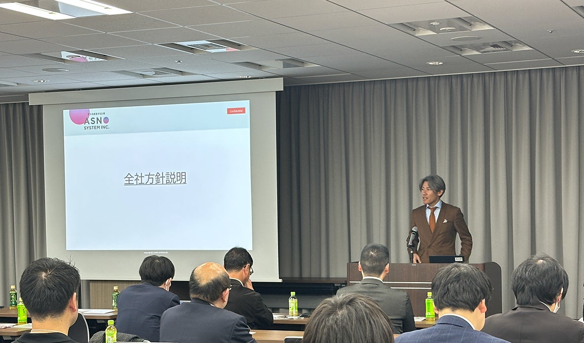 イベント当日は、アスノシステムの代表取締役社長 齋藤が、2030年の売上高70億円に向けた成長戦略を発表し、また、各事業部の責任者が、サービス概要や方針についてプレゼンテーションを実施しました。IT業界における現在の課題だけでなく、4つの事業を通じた次世代のビジネス展開について発表いたしました。