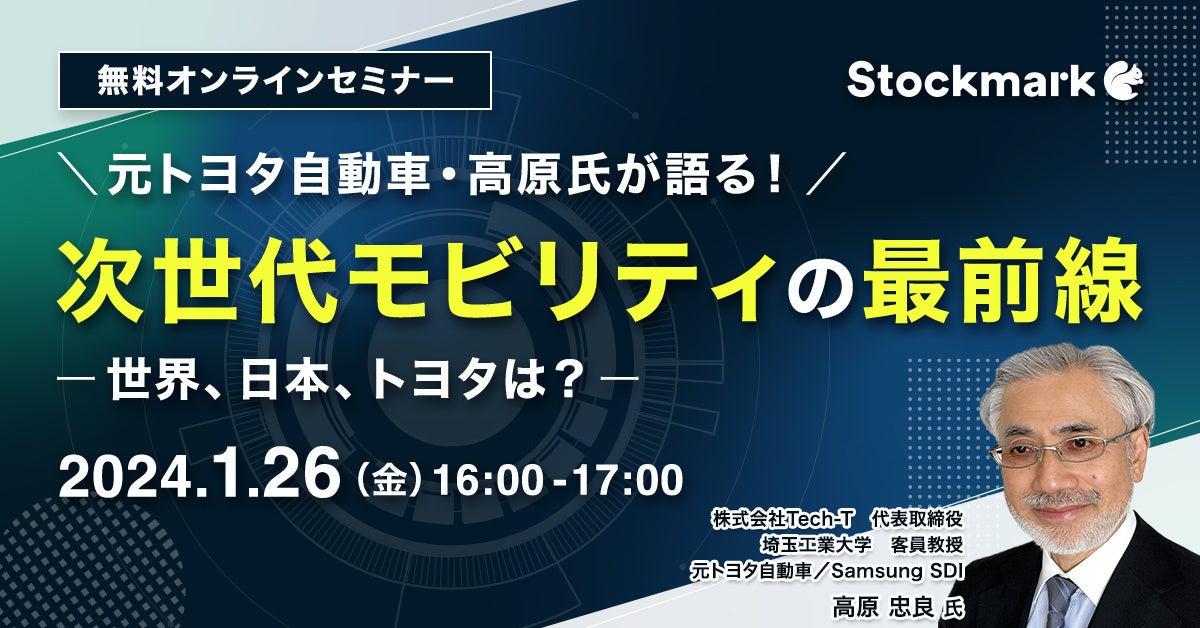 【1月26日(金) 無料セミナー】『次世代モビリティの最前線 〜 世界、日本、トヨタは? ~』を開催(ストックマーク主催)