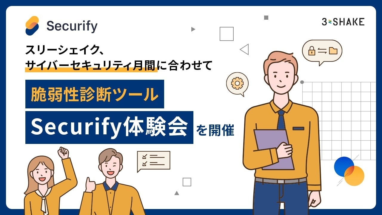 株式会社スリーシェイク(本社:東京都新宿区、代表取締役社長:吉田 拓真、以下スリーシェイク)は、2月1日から3月18日にわたるサイバーセキュリティ月間に合わせて、「手軽に何度でもできる脆弱性診断ツールSecurify体験会」を実施いたします。